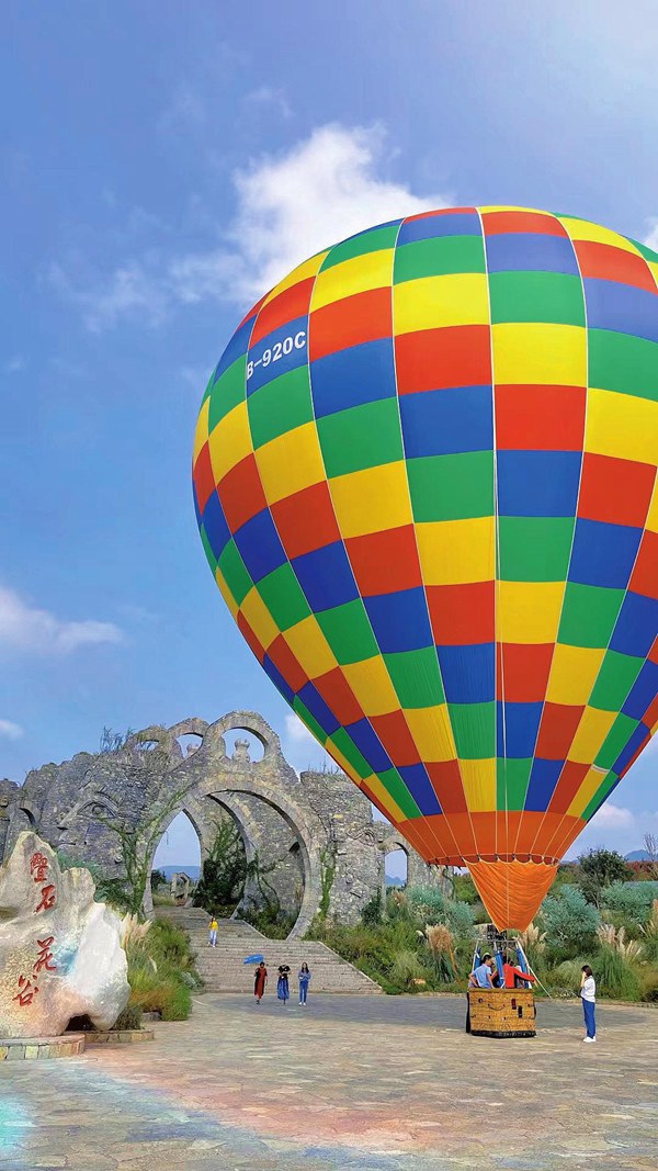 在疊石花谷景區(qū),有沉睡的寒武紀疊層石花、各種用石頭堆砌出來的儺文化作品、“鄉(xiāng)村藝術(shù)展陳區(qū)”等。中秋假期,疊石花谷開啟熱氣球觀景項目,游客可以乘坐熱氣球飛上天空,俯瞰整片花谷的精彩。