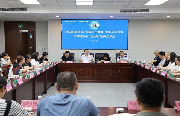 銅梁區(qū)稅務(wù)局聯(lián)合區(qū)工商聯(lián)、區(qū)經(jīng)信委與企業(yè)座談,回答企業(yè)關(guān)心的問題。馮云飛攝