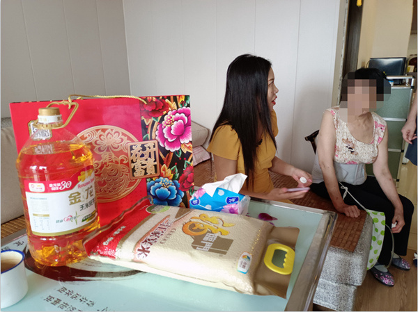 活動(dòng)當(dāng)天,重慶迪邦皮膚病醫(yī)院黨支部書(shū)記、龍湖社區(qū)黨委書(shū)記等慰問(wèn)組一行,為困難戶送去慰問(wèn)和生活用品。