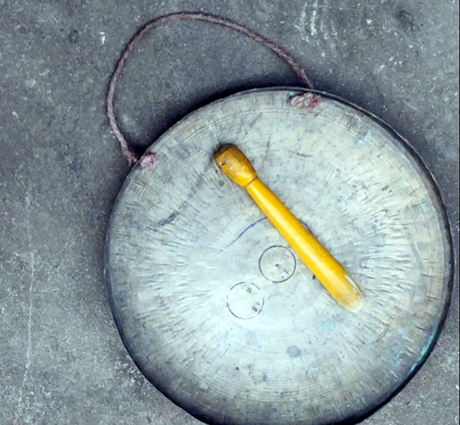 王仕軒用來(lái)預(yù)警的鑼 譚文政攝