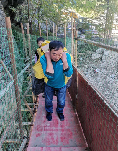 安全地帶就選在王仕軒家門(mén)口的空地帶。待清點(diǎn)人數(shù)時(shí),才發(fā)現(xiàn)90多歲的老黨員田紹杰和他兒子并未到現(xiàn)場(chǎng)。王仕軒二話沒(méi)說(shuō),拿起手電就獨(dú)自往田紹杰家趕,好一陣顛簸,終于將兩父子接了出來(lái)。