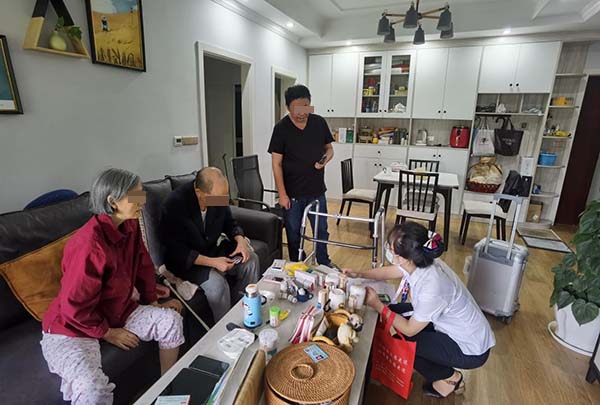 每年八月是工行重慶石柱支行年度較為繁忙的一個月,由于該行負(fù)責(zé)代發(fā)石柱縣部分社保養(yǎng)老金工作,網(wǎng)點(diǎn)內(nèi)每天上午客流量都超過300人次。八月中旬的一天,工行重慶石柱支行接待了一位神色焦急的客戶彭某,他手里拿著兩張醫(yī)?ㄕ埱蠊ぷ魅藛T幫忙激活!拔业陌謰屇晔乱迅,且行動不便,目前都在鄉(xiāng)下養(yǎng)老院里面臥床療養(yǎng),沒法親自前來辦理業(yè)務(wù),該怎么辦?”工作人員見狀,連忙耐心地與其溝通,在詳細(xì)了解情況之后,大堂經(jīng)理表示:“如果兩位老人確實(shí)存在著困難, 我們可以提供上門服務(wù)。核實(shí)情況后,可以由親屬代辦業(yè)務(wù)。”