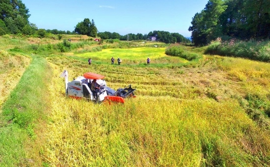 9月26日,站在山頂?shù)咎镞呅落佋O(shè)的水泥路上,看著收割機和鄉(xiāng)親們在稻田里來來回回地忙碌,運回一車又一車新打的稻谷,石灘鎮(zhèn)“三社融合示范基地”稻米專業(yè)合作社的“當(dāng)家人”劉順友,心頭滿是喜悅。他默默算了一筆賬,稻米合作社共種植了298畝高山生態(tài)稻田,根據(jù)巴南區(qū)農(nóng)委的實地測產(chǎn),每畝產(chǎn)量達到了1100多斤,298畝稻田的總產(chǎn)量將達到32萬斤左右。更令人高興的是,這些正在收割的高山生態(tài)稻谷還沒有正式上市銷售,就基本已被預(yù)訂一空了。