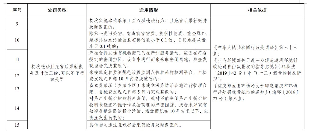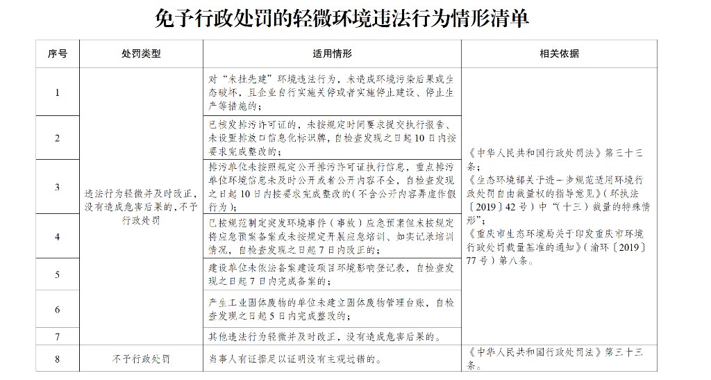 免于行政處罰的輕微環(huán)境違法行為情形清單(1)。市生態(tài)環(huán)境局供圖 華龍網(wǎng)-新重慶客戶端發(fā)