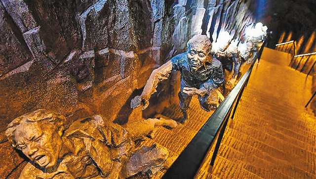 重慶大轟炸“六五”隧道慘案遺址,長長的階梯兩旁的群雕是避難者逃出隧道涌向洞外的樣子。(資料圖片)記者 齊嵐森 崔力 攝/視覺重慶