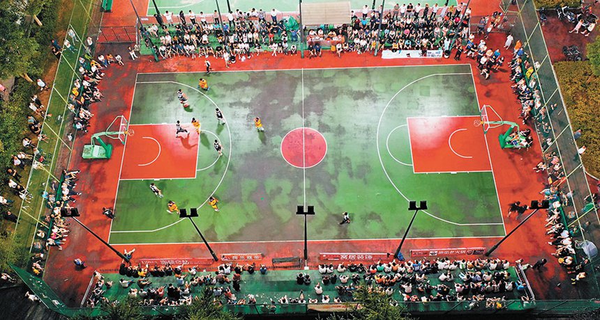 10月2日晚,梁平區(qū)全民健身中心旁的露天球場(chǎng),市民參加籃球比賽。國(guó)慶假期,不少市民走進(jìn)體育場(chǎng)所,跑步、踢足球、打籃球、打太極拳等,鍛煉身體,放松心情,愉快度假。特約攝影 劉輝/視覺重慶