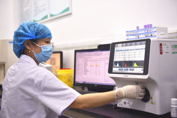 檢驗(yàn)人員正在對(duì)采集的血樣標(biāo)本進(jìn)行檢測(cè)。陶涵攝
