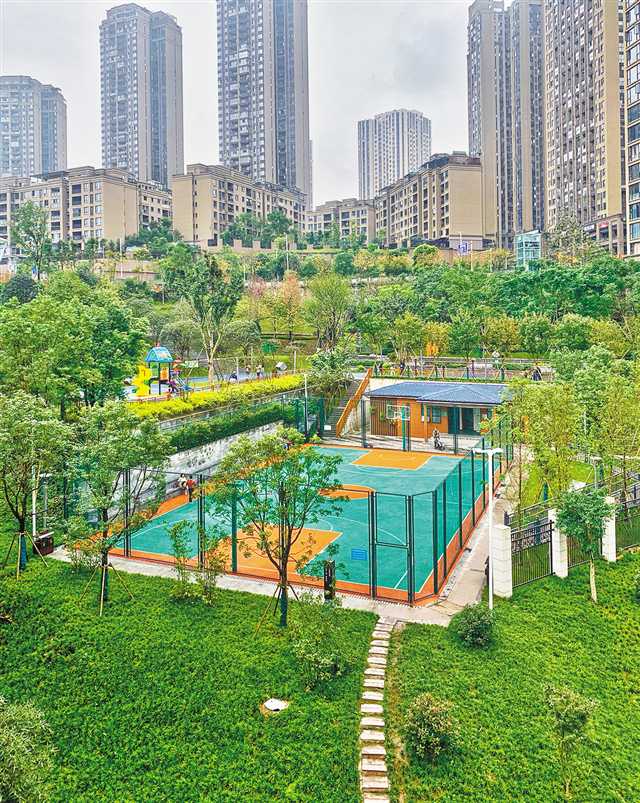 九龍坡區(qū)凌江園,居民在利用坡坎崖分層次打造的綠化區(qū)和體育運(yùn)動(dòng)區(qū)休閑。(本報(bào)資料圖片)記者 張錦輝 攝/視覺(jué)重慶