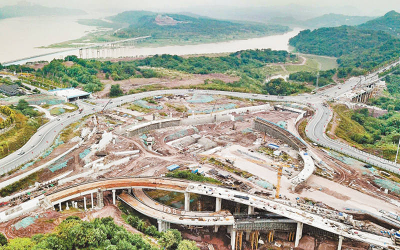 10月13日,南岸區(qū)茶園新城東北部,通江立交工程與廣陽島隔江相望。