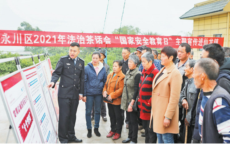 2021年4月15日,永川區(qū),民警向村民宣傳如何維護(hù)國家安全。(資料圖片)通訊員 陳仕川 胡莉 攝/視覺重慶