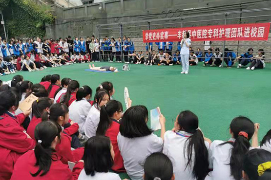 豐都縣中醫(yī)院專(zhuān)科護(hù)理團(tuán)隊(duì)進(jìn)校園。豐都縣衛(wèi)生健康委供圖