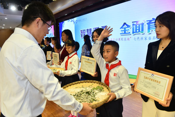 人民網(wǎng)重慶10月23日電 10月22日,重慶市融匯沙坪壩小學舉行“智慧蠶桑 全面育人——現(xiàn)代蠶桑勞動課程基地”七色絲家蠶養(yǎng)殖發(fā)放儀式,標志著融匯沙小的蠶桑課程正式走進每個學生的家庭。
