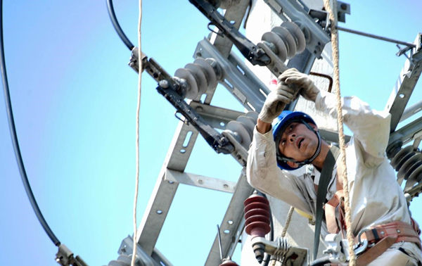 國網(wǎng)重慶江津區(qū)供電公司員工對線路設備開展檢修。王化全攝