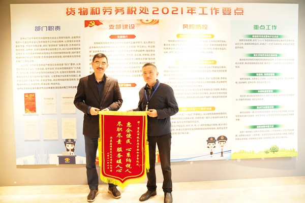華晨鑫源重慶汽車有限公司向重慶市稅務(wù)局送上錦旗。徐好好攝