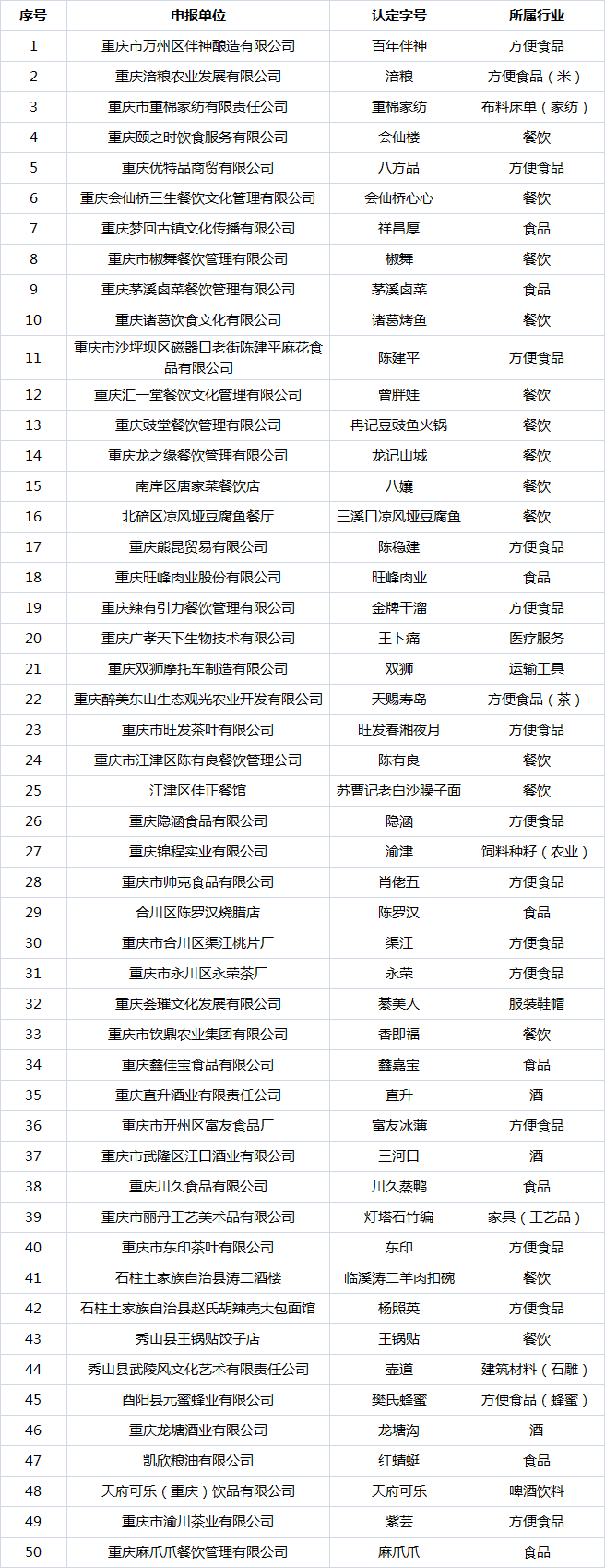近年來,重慶市商務(wù)委積極貫徹落實(shí)黨中央、國務(wù)院、市委、市政府關(guān)于保護(hù)促進(jìn)老字號(hào)發(fā)展的相關(guān)要求,推動(dòng)老字號(hào)在傳承中堅(jiān)持創(chuàng)新、在創(chuàng)新中尋求發(fā)展。日前,重慶市商務(wù)委發(fā)布第六批重慶老字號(hào)認(rèn)定名單,50個(gè)品牌被認(rèn)定為新一批重慶老字號(hào),重慶老字號(hào)的隊(duì)伍薪火相傳不斷壯大,持續(xù)綻放新活力。