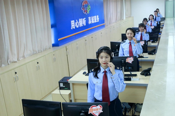 黔江區(qū)稅務(wù)局增加二級12366辦稅繳費服務(wù)熱線坐席人員至7名,有效提升熱線接通率。張峻攝