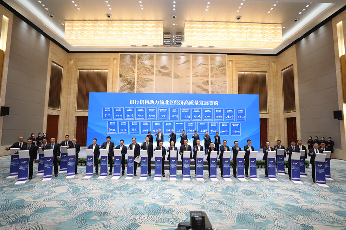 銀行機(jī)構(gòu)助力渝北區(qū)經(jīng)濟(jì)高質(zhì)量發(fā)展簽約現(xiàn)場。胡瑾攝