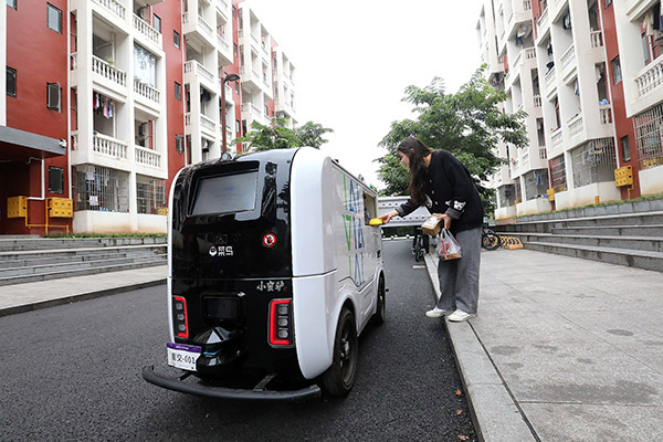 重慶首個無人快遞車在重慶交通職業(yè)學院投用
