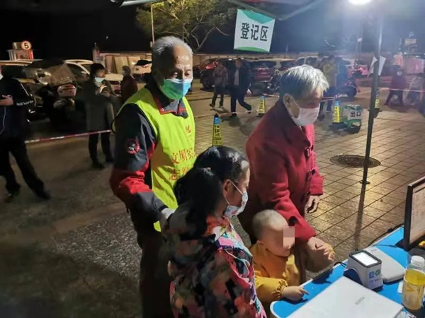 在渝北各個(gè)檢測點(diǎn),志愿者們成為了一道靚麗風(fēng)景:黨員志愿者周揚(yáng)在收到龍溪街道金紫山社區(qū)發(fā)出的黨員志愿服務(wù)招募令后,第一時(shí)間報(bào)名并趕到現(xiàn)場協(xié)助工作;青年志愿者冉孟前現(xiàn)場幫助居民注冊核酸檢測需求,做好后勤保障;龍溪街道李家花園社區(qū)黨員志愿者張勇連夜完成顏家灣街區(qū)第一輪核酸檢測,并對武陵路152號進(jìn)行重點(diǎn)人員逐戶排查核實(shí),確保實(shí)現(xiàn)“不漏一人、不漏一戶”;龍塔街道紫福路社區(qū)志愿者龍運(yùn)渡、渝魯社區(qū)網(wǎng)格員李艷杰、魯能西路社區(qū)網(wǎng)格員吳慶國從早上8:00開始到社區(qū)忙碌,直到深夜仍不退縮;龍溪街道紅石支路社區(qū)熱心居民余家凡手提喇叭和話筒,持續(xù)向排隊(duì)居民進(jìn)行溫馨提醒……