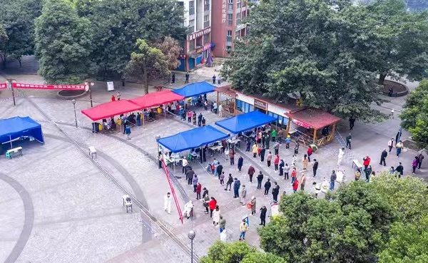 核酸采樣人員在應(yīng)急場所、學(xué)校操場、小區(qū)公共場所等開展核酸檢測工作。徐強攝