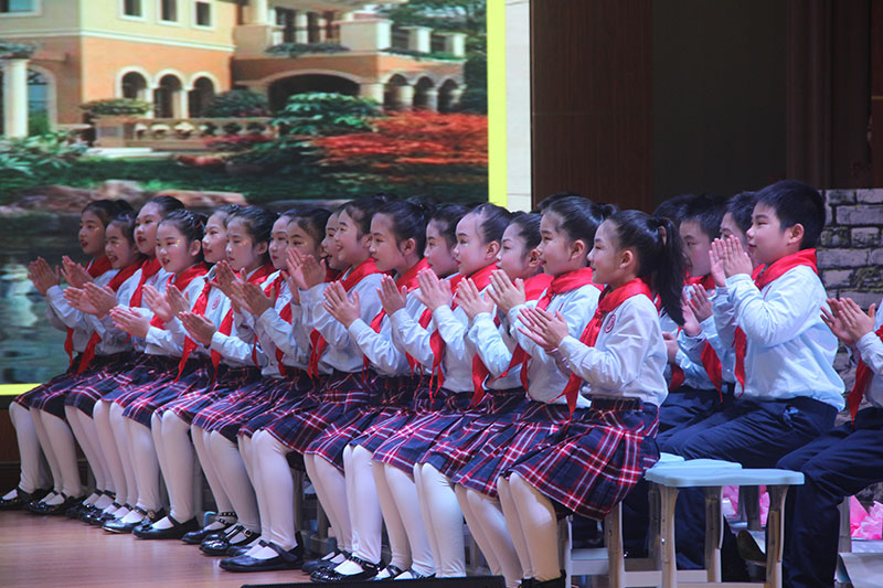 本次活動主題是“追革命之光,做文明少年”。其中,四(9)中隊以《富強》為題,從“情憶巴國渝水美”“禮贊國際新都妙”“互聯(lián)網(wǎng)改變生活”三部分,以合唱、舞蹈、演講、誦讀、情景劇等鮮活生動的方式,點贊魅力重慶,展翅雛鷹少年,全校師生和家長在線觀看了展示直播。