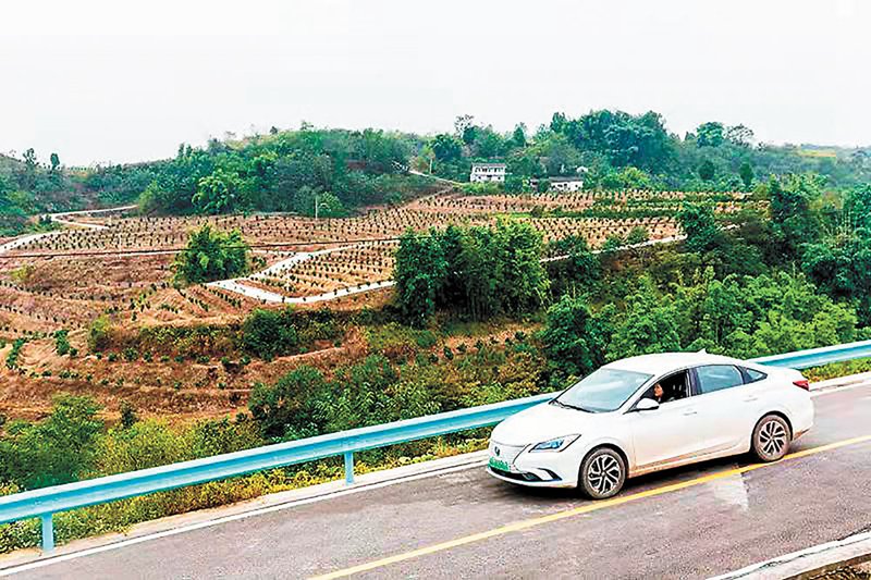 奔馳在鄉(xiāng)間的新能源汽車。(受訪者供圖)