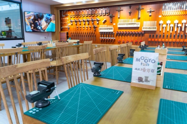其中,一層是手工坊,里面有各種各樣利用廢棄物做成的手工制品,還有一排排的小型機具,市民可以利用這些機具對廢舊材料進行再加工,體驗完整的變廢為寶全過程。