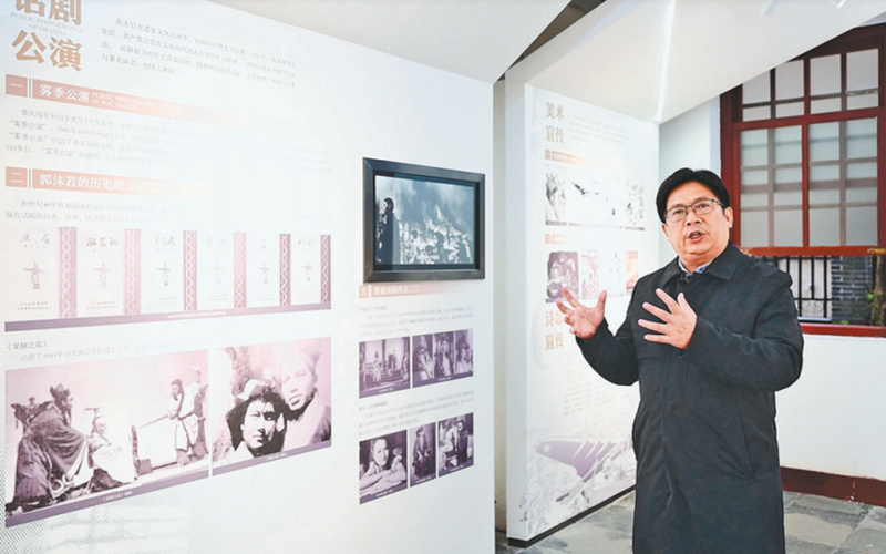 “說(shuō)到這座小樓,還不得不說(shuō)到話劇《屈原》。當(dāng)年,郭沫若就是在這里用10天時(shí)間創(chuàng)作出了這個(gè)‘劇壇上的奇跡’。”徐光煦指著復(fù)原的話劇《屈原》場(chǎng)景,講述起那段“中國(guó)話劇的黃金歲月”。