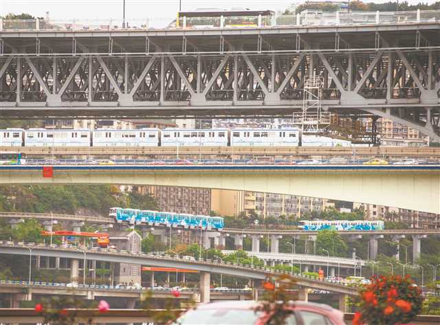 渝中區(qū)牛角沱,嘉陵江大橋附近,公交車和軌道交通構(gòu)筑的立體交通網(wǎng)初具規(guī)模。本報(bào)資料圖片 記者 崔力 攝