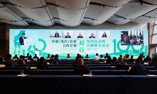 中新(重慶)農(nóng)業(yè)“雙百”合作計劃簽約儀式暨直播推介活動現(xiàn)場。許琳珮攝
