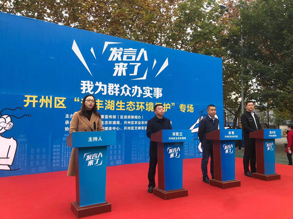人民網(wǎng)重慶11月25日電 “你提問,我回答!”11月25日,開州區(qū)舉辦“發(fā)言人來了——我為群眾辦實事”“漢豐湖生態(tài)環(huán)境保護”專場發(fā)布活動走進開州區(qū)文峰街道,區(qū)生態(tài)環(huán)境局、區(qū)農(nóng)業(yè)農(nóng)村委、區(qū)城管局的3位“發(fā)言人”向市民一同交流漢豐湖的生態(tài)保護。