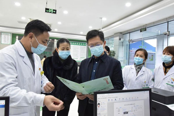 調(diào)研組在璧城街道衛(wèi)生院查看“健康管理站”運(yùn)行情況。璧山區(qū)衛(wèi)生健康委供圖