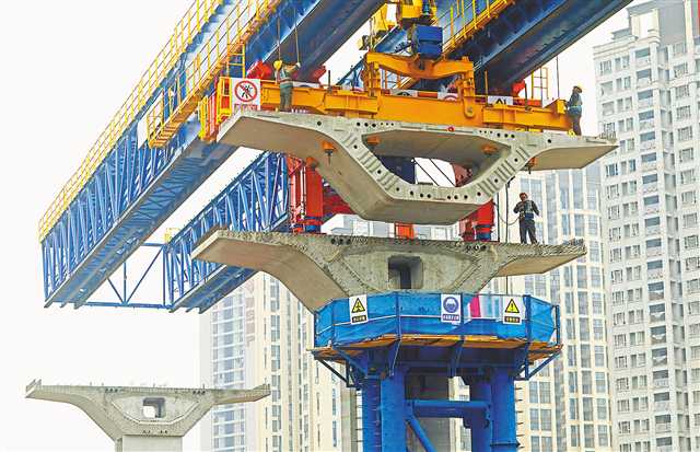 2021年3月22日上午,軌道十八號線金鰲山站——跳磴站區(qū)間首段拼裝梁順利起架。記者 羅斌 攝/視覺重慶
