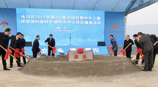環(huán)球錦標(biāo)建材倉儲物流中心項(xiàng)目奠基活動現(xiàn)場。胥世鵬攝