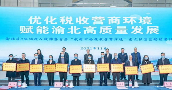 人民網(wǎng)重慶11月27日電 11月26日,在仙桃數(shù)據(jù)谷會(huì)議中心,重慶市渝北區(qū)稅務(wù)局舉辦“優(yōu)化稅收營(yíng)商環(huán)境 賦能渝北高質(zhì)量發(fā)展”活動(dòng),對(duì)渝北區(qū)12名A級(jí)納稅人代表和12名渝北區(qū)首屆“我眼中的稅收營(yíng)商環(huán)境”圖文征集活動(dòng)獲獎(jiǎng)代表進(jìn)行了授牌、頒獎(jiǎng)。