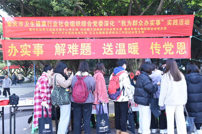 “近年來,我國新增HIV感染者年齡呈現(xiàn)青年老年‘兩頭翹’現(xiàn)象。特別是青年學生,處在性活躍期,加上性觀念開放,艾滋病感染率呈上升趨勢!敝貞c市衛(wèi)生健康行業(yè)社會組織綜合黨委專職副書記魏鵬鈞介紹,針對這些現(xiàn)象,他們將艾滋病防控宣教活動報搬進高校,從而培養(yǎng)青年學生健康文明的生活習慣,增強自我保護意識和社會責任感。