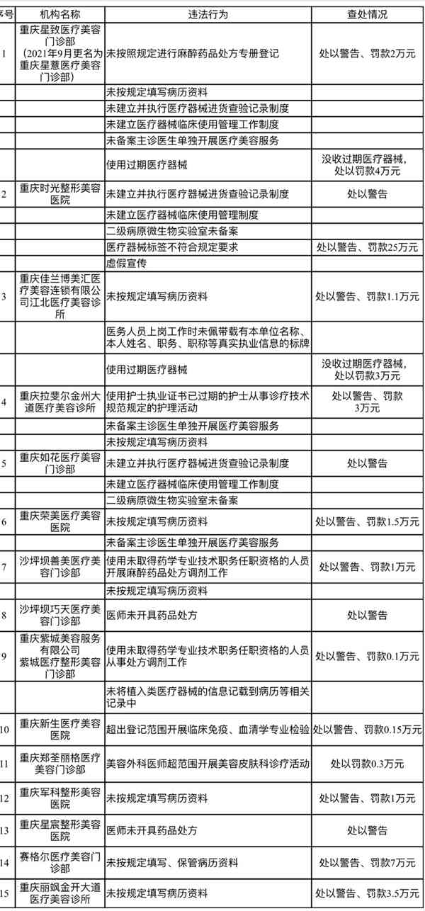 重慶15家醫(yī)療美容機(jī)構(gòu)被立案調(diào)查 時(shí)光整形被罰25萬元(附名單)