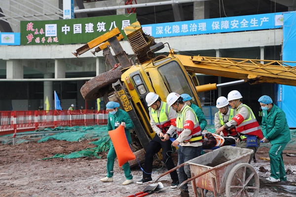 重慶市2021年房屋市政工程綜合應(yīng)急演練視頻觀摩會現(xiàn)場。中建八局供圖