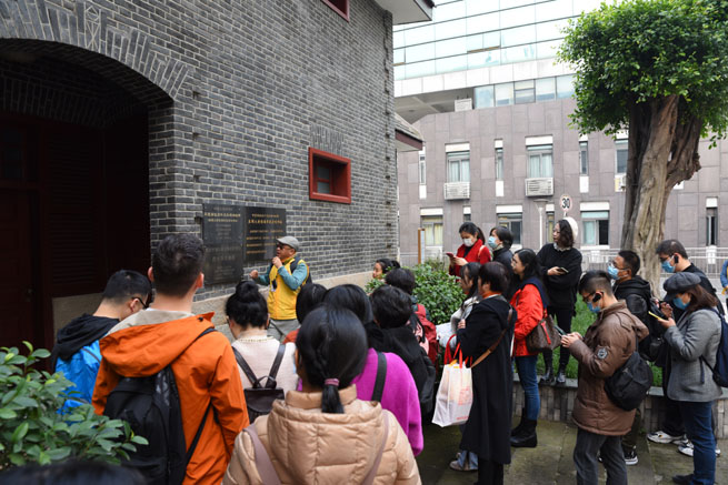活動中,在導游童思斯帶領(lǐng)下,從南濱路國家級文化產(chǎn)業(yè)示范園區(qū)到故宮南遷紀念館結(jié)束,通過盤點產(chǎn)業(yè)園區(qū)內(nèi)的商家,引入特色互動體驗,倡導和培養(yǎng)游客的體驗式生活方式,將消費變?yōu)橐环N周末的旅行新形式,讓大家感知到文物建筑背后的故事,以及開埠文化對重慶的影響。