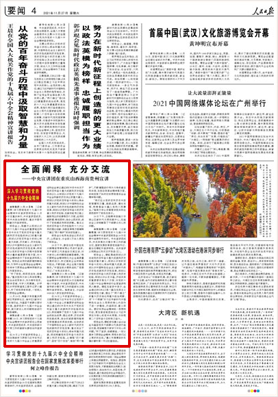 本報海口11月26日電 (記者孫海天)學習貫徹黨的十九屆六中全會精神中央宣講團26日在海南省?谑行v,中央宣講團成員、中央宣傳部分管日常工作的副部長王曉暉作宣講報告。海南省主、分會場4000余人參加宣講報告會。
