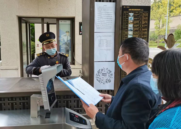 社區(qū)環(huán)物委成員走訪收集小區(qū)問題。金祥社區(qū)供圖
