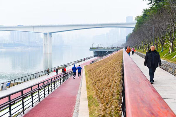 在江北嘴江灘公園,市民們了解了‘兩江四岸’核心區(qū)重點岸線治理提升項目,并對未來濱江水岸的變化產(chǎn)生了期待。市民吳爽的家就在公園附近,他親眼見證了這塊消落區(qū)的變化!斑@里以前都是荒地,但是修了江灘公園過后,路又寬又平又好走,生態(tài)環(huán)境更好了,我一周都會帶孩子來1-2次,感受城市的變化。”