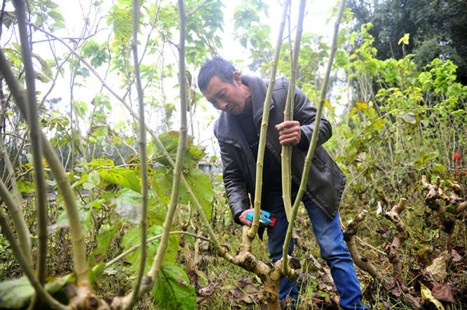 黔江區(qū)蓬東鄉(xiāng)麻田村4組脫貧戶周適合對(duì)桑樹(shù)進(jìn)行冬管。龔杰品攝