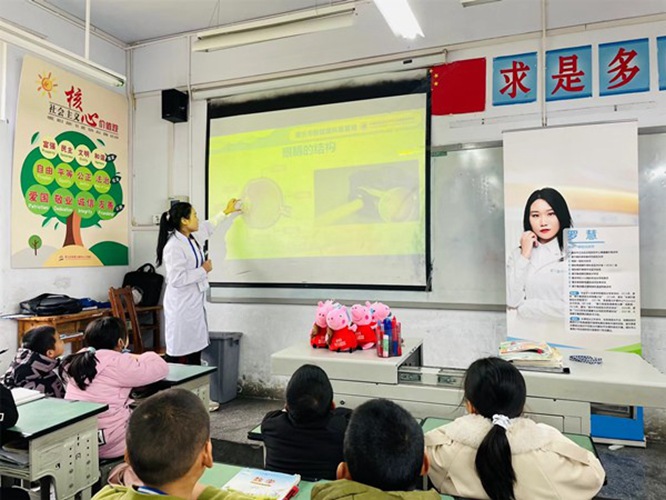 重慶市江北區(qū)近視防控中心眼健康科普講師羅慧將眼健康科普講座帶進班級,為50余名同學(xué)們帶來一場科普知識講座。羅慧從視力發(fā)育規(guī)律、近視的成因、近視的危害、如何預(yù)防近視等方面系統(tǒng)闡述了關(guān)于眼健康的知識。