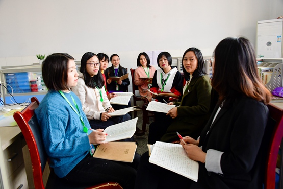云陽縣青龍小學(xué)六年級語文組作業(yè)設(shè)計研討。云陽縣教委供圖