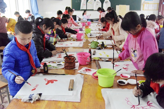 云陽縣海峽小學(xué)課后服務(wù)國畫社團現(xiàn)場。云陽縣教委供圖