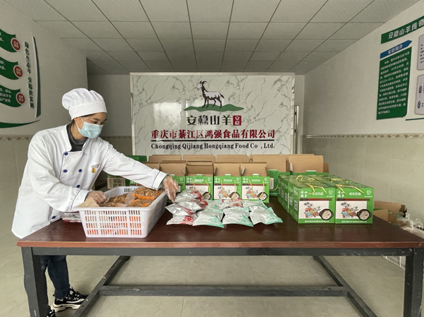 綦江區(qū)鴻強(qiáng)食品有限公司工作人員正在打包。胥世鵬攝