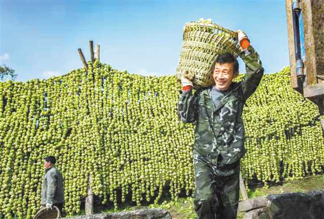 榨菜已成為農(nóng)民持續(xù)增收的重要途徑。圖為菜農(nóng)正在風(fēng)干青菜頭。(涪陵區(qū)供圖)