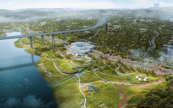 釣魚嘴濱江段項目起于濱江路跨線橋,止于魚洞長江大橋,岸線長度7公里,面積170.8公頃,以本底特色為依托,微改造、巧利用現(xiàn)有草海、森林、江灘等資源,彰顯大地環(huán)境、生態(tài)藝術(shù),提出“大自然是演奏家,讓長江與音樂的相遇,生態(tài)與音樂的交織”的理念,貫通步道體系,聯(lián)動周邊長江音樂廳、音樂學(xué)院、音樂博物館等功能,重點打造長江之歌音樂公園。