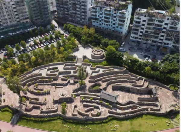 石磨、石缸、石墩……一個個老物件鑲嵌在景墻上,古樸的氣息在這個迷宮般的景觀中漫延。“時機來了,命運也會有轉(zhuǎn)機”,該工程的相關(guān)負責(zé)人表示,四方井迷宮蘊藏著美好的心愿,是一個承載了數(shù)千年農(nóng)耕文化的石器石具博物館。